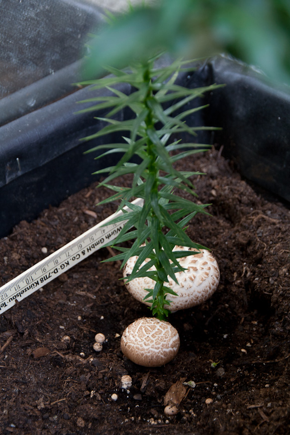 • Hat ein wenig gedauert, bis neue Fruchtkörper gewachsen sind. Ich vermute die Pilze in Symbiose mit der brasilianischen Araukarie. Kann das sein?