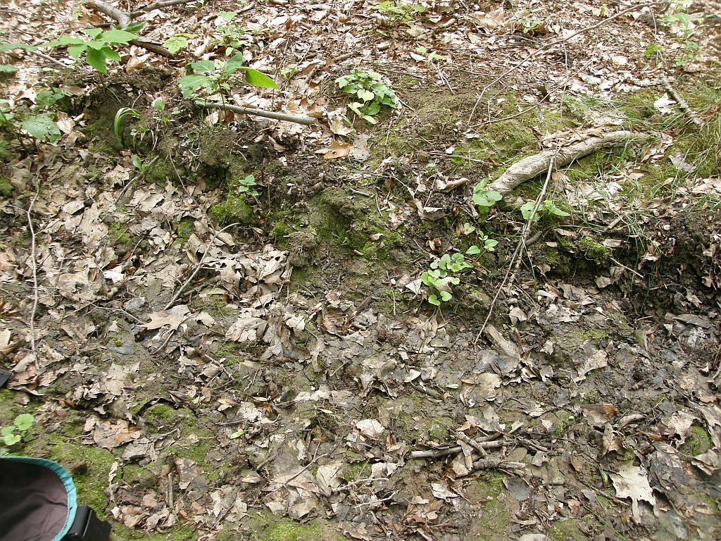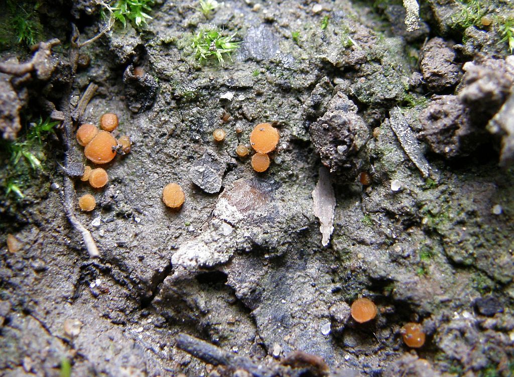 Weiter unten, am Grund der Reifenspur befanden sich weitere Kollektionen orangener Becherchen, die ich ebenfalls der geschädigten Scutellinia zugeordnet hätte. Oder es wäre Scutellinia crucipila gewesen.