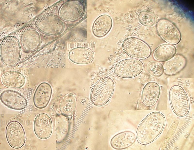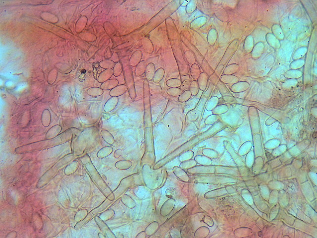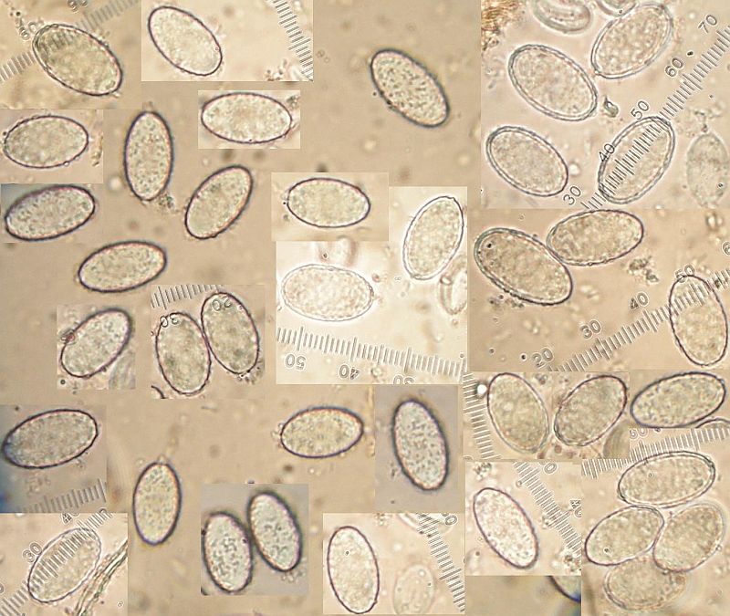 Besonders wunderlich sind die Sporen. Die sind in der Größe sehr variabel, meine Messungen ergeben 13-21 x 8-13 µm: