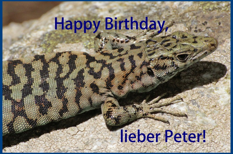 Hier gratuliert mit uns ein hübscher Geselle, der uns vor kurzem auf Korsika über den Weg gelaufen ist...