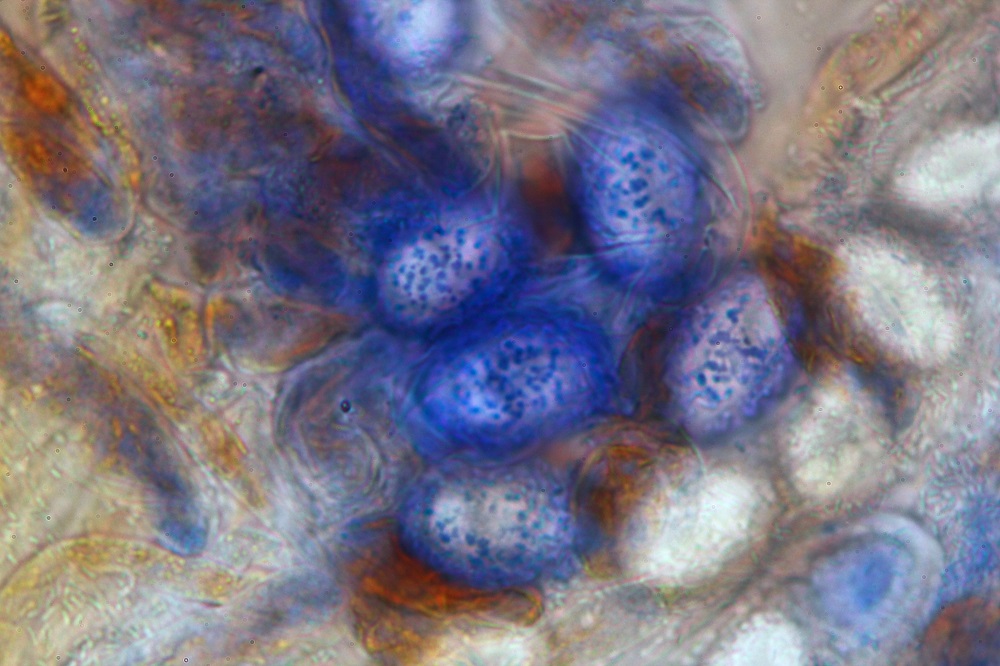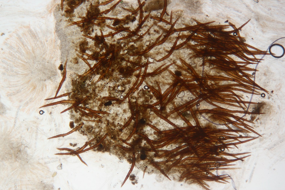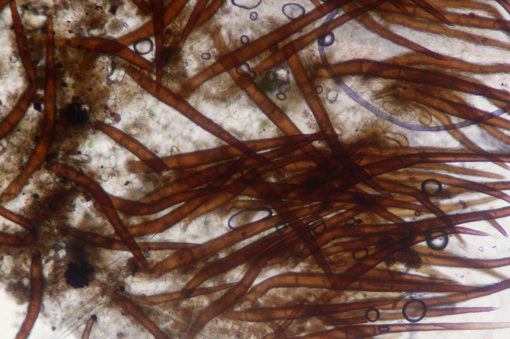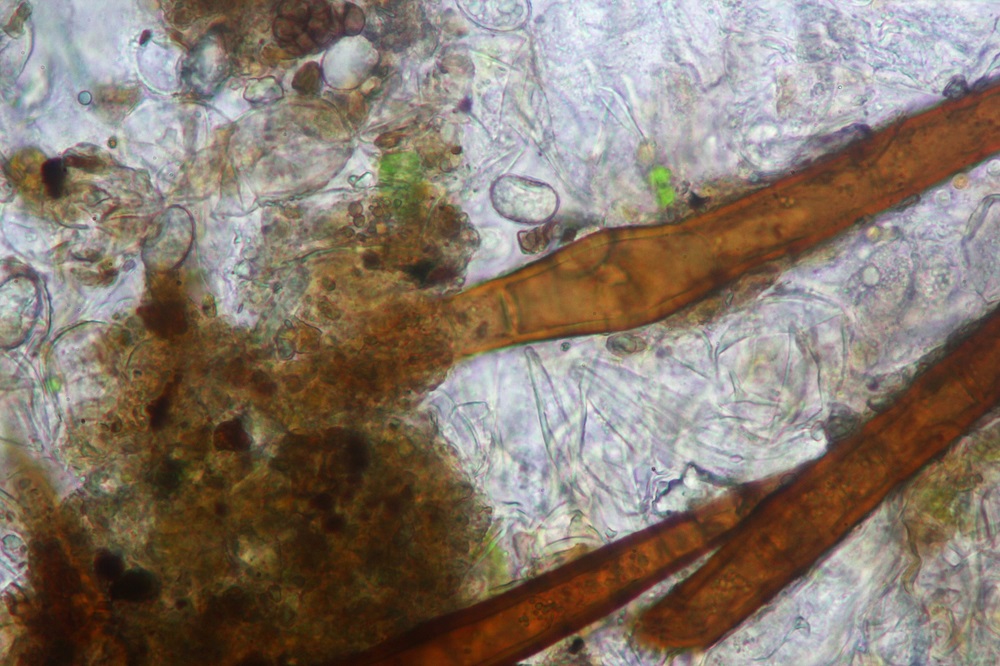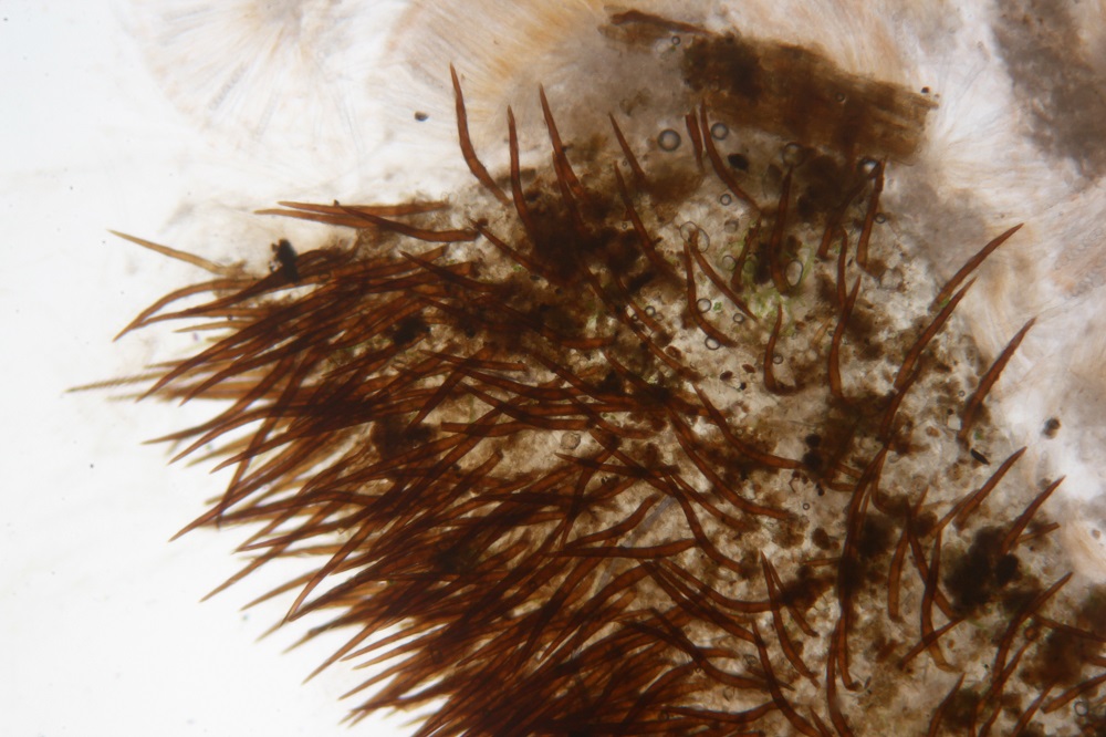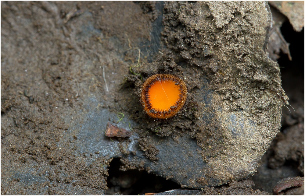 Am 16.6.15 fand ich in einem Mischwald hauptsächlich Erlen, aber auch ein paar vereinzelte Buchen, Eichen und Nadelbäumen eine unbekannte Scutellinia auf Blättern.