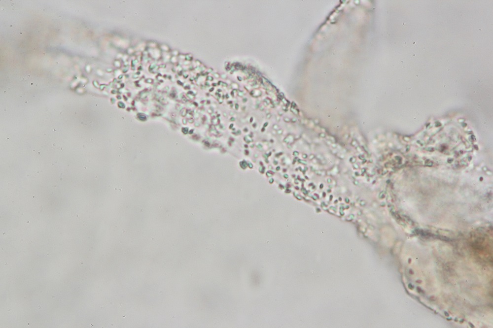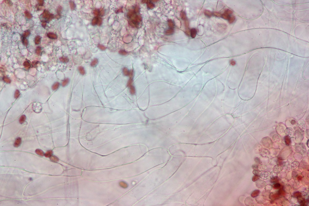 Und ja: Die kleinen Punkte an der Hyphe auf Bild 9 sind Kristalle. Die aber hier kaum bestimmungsrelevant wären. ich nehme an, das ist ein Präparat vom Stiel?