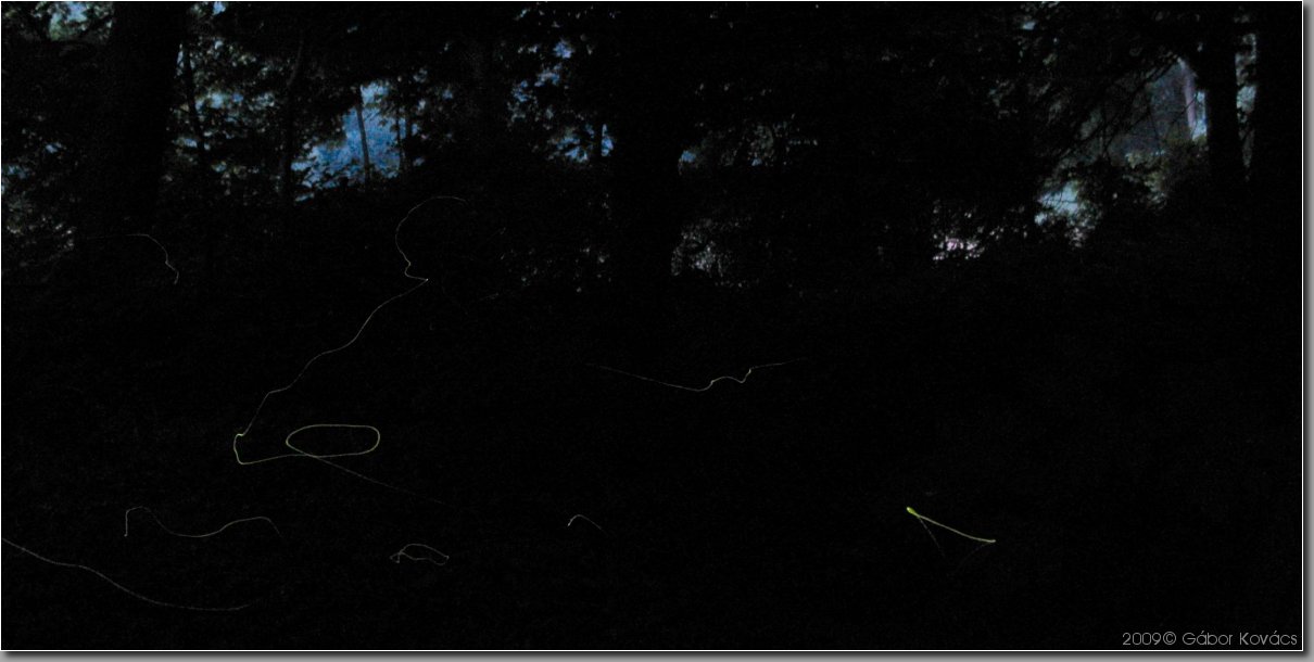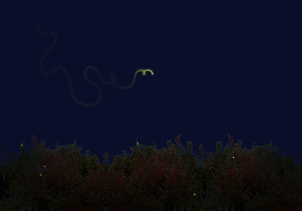 Kleine Lichtpunkte irrlichtern durchs stille Gebüsch