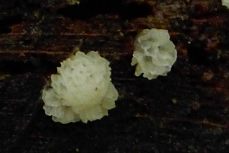 Und das ist ja interessant, wie Ceratiomyxa eingetrocknet aussehen kann, das habe ich auch noch nie beobachtet, dann sind die "Röschen" die Reste der Poren, o.k. prima!