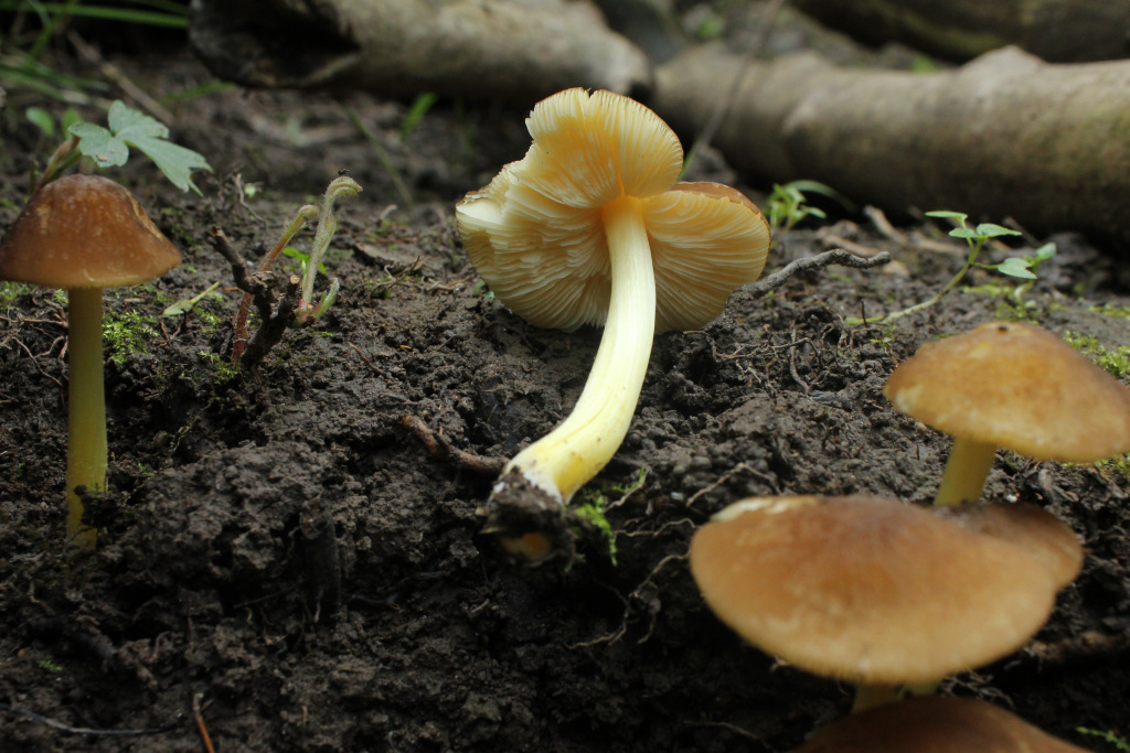 Dann tatsächlich ein Pilz mit Hut und Stiel. Nein drei, genau gesagt. Mit den Lamellenpilzen steh ich immer noch auf Kriegsfuß. Um überhaupt einen Namen zu vergeben, hab ich ihn Buchen-Wasserfuß (Hydropus subalpinus) getauft. Das mag völlig falsch sein, dann bitte ich um Korrektur.
