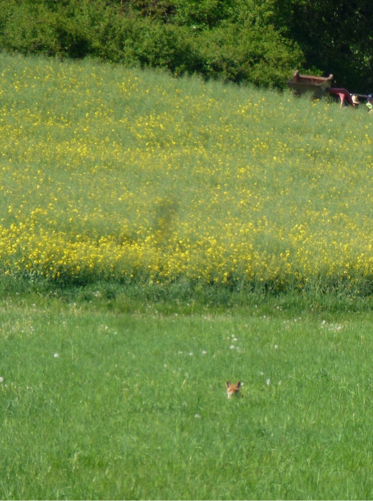 Kurz bevor die Sonne untergeht, gab es noch eine unglaublich schöne Ünerraschung... Ihr entschuldigt die Bildqualität, Dämmerung und ganz schön weit weg waren diese hier, eine kleine Handvoll Fuchsnachwuchs