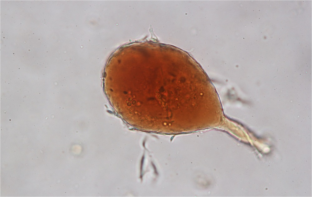 Heute habe ich in der Probe noch einmal reingeschaut und eine Spore gefunden.