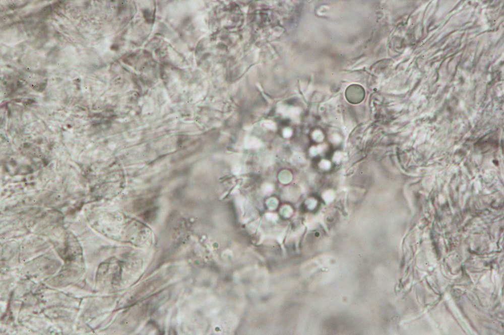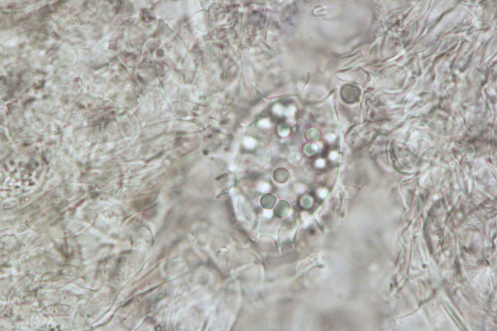 Erst dachte ich es wäre wieder eine Hymenogaster und habe mich ein wenig geärgert, weil letztes Jahr waren dort schon welche und dieses Jahr gab es auch schon eine, aber zuhause unter dem Mikro sah es dann ganz anders aus.