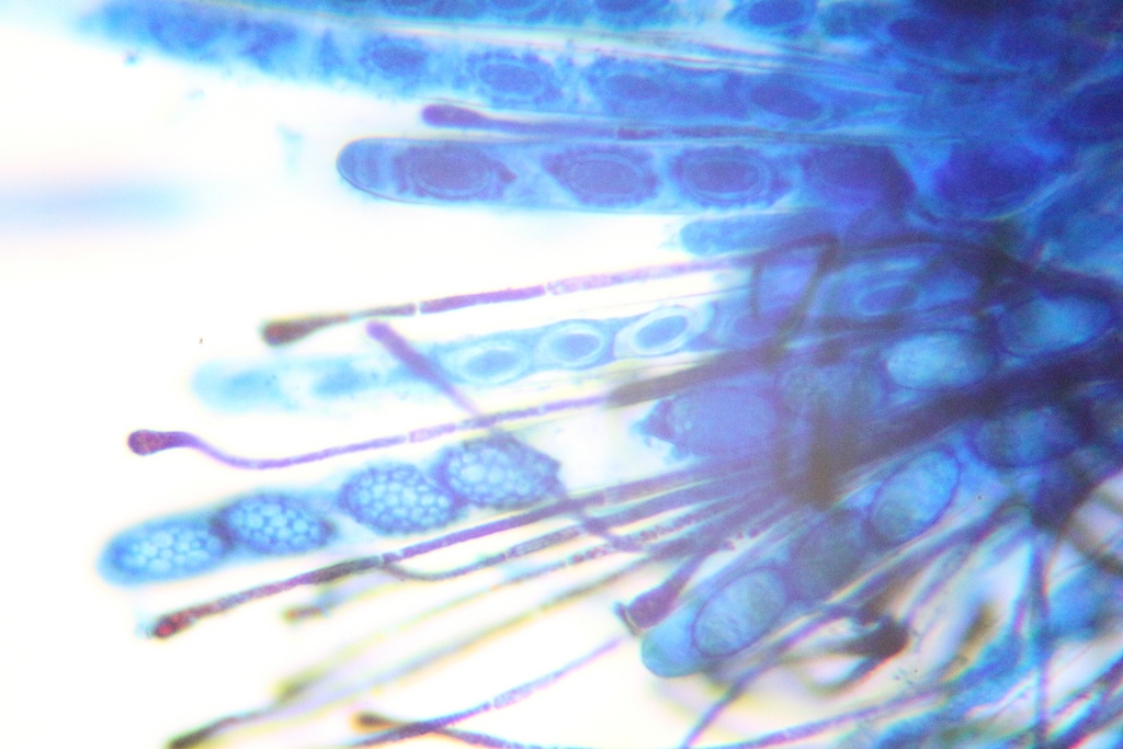 Ascis und Paraphysen, beide habe ich nicht vermessen. Freie Sporen habe ich in diesem Präparat keine angetroffen, das wären sinnlose Messungen gewesen.