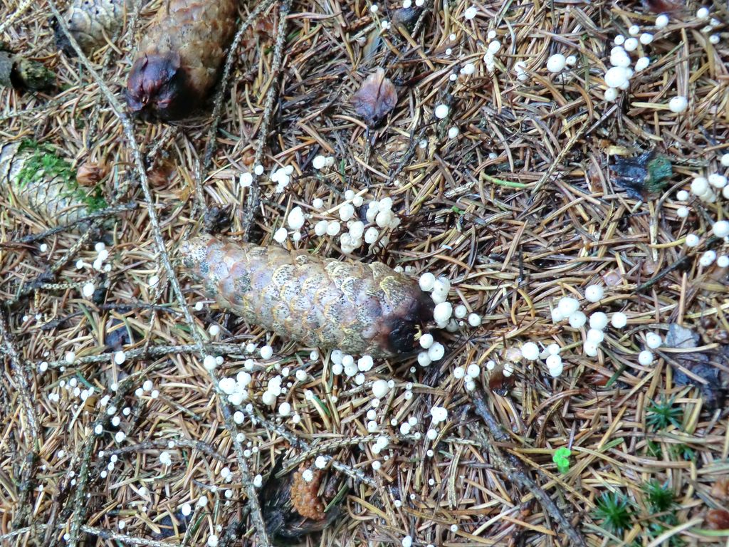 Außerdem sah ich gestern noch einen Zwergbovist, nur leider hatten die Schnecken Ihn bis heute platt gemacht.