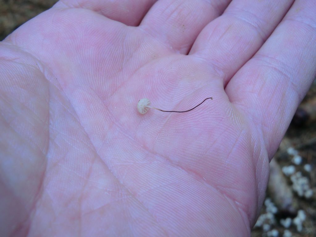 Pilz Nr.4 auch weiß. Hut 3cm, Stiel 3cm lang, Durchmesser 6mm. Geruch ähnlich dem Maipilz! Name?