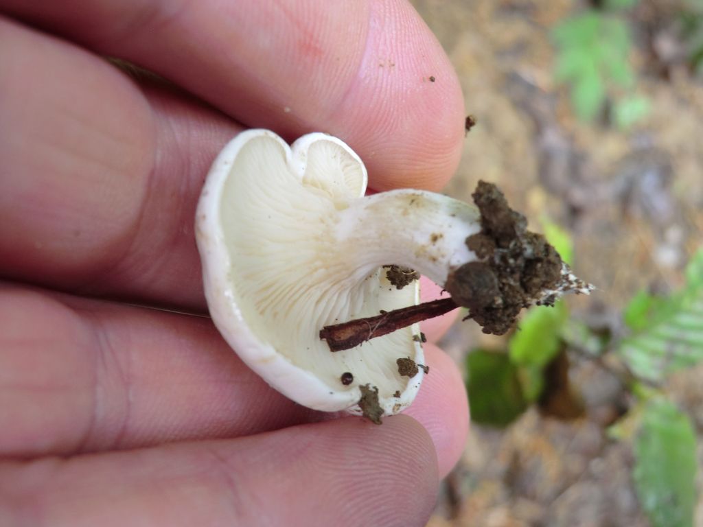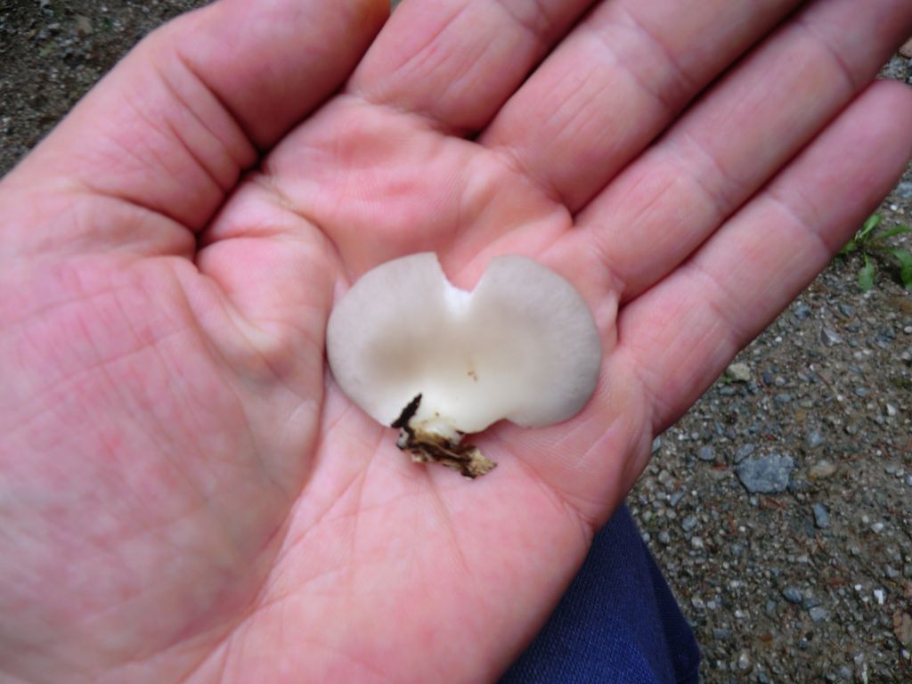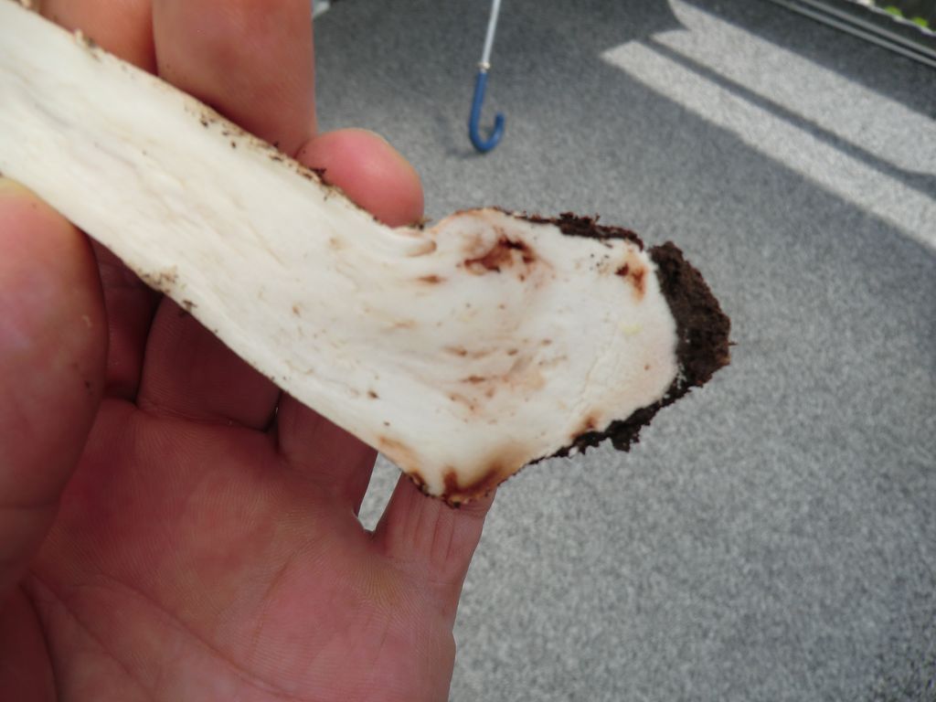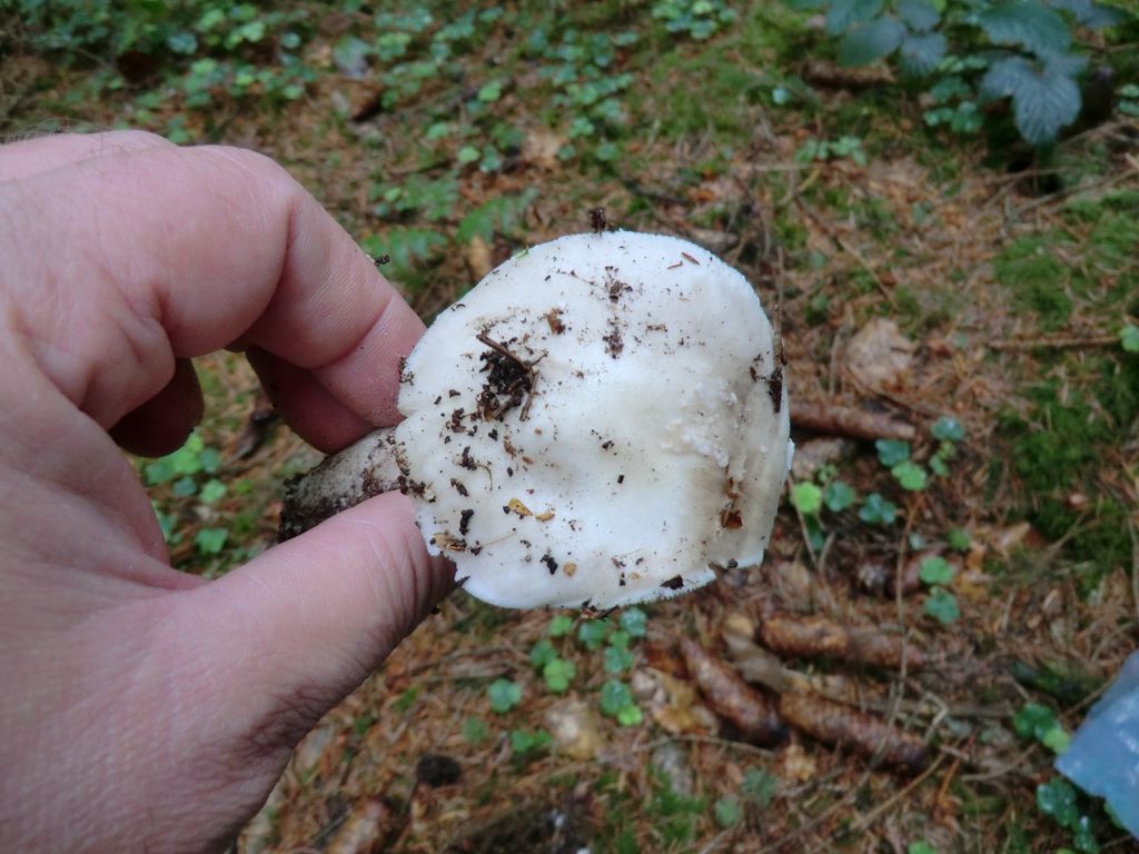 Pilz Nr.2 war weiß und roch nach muffigem Keller bzw. nasses Papier das schon länger liegt.Hut 6cm, Stiel 9cm lang, Durchmesser 12mm. Namen?