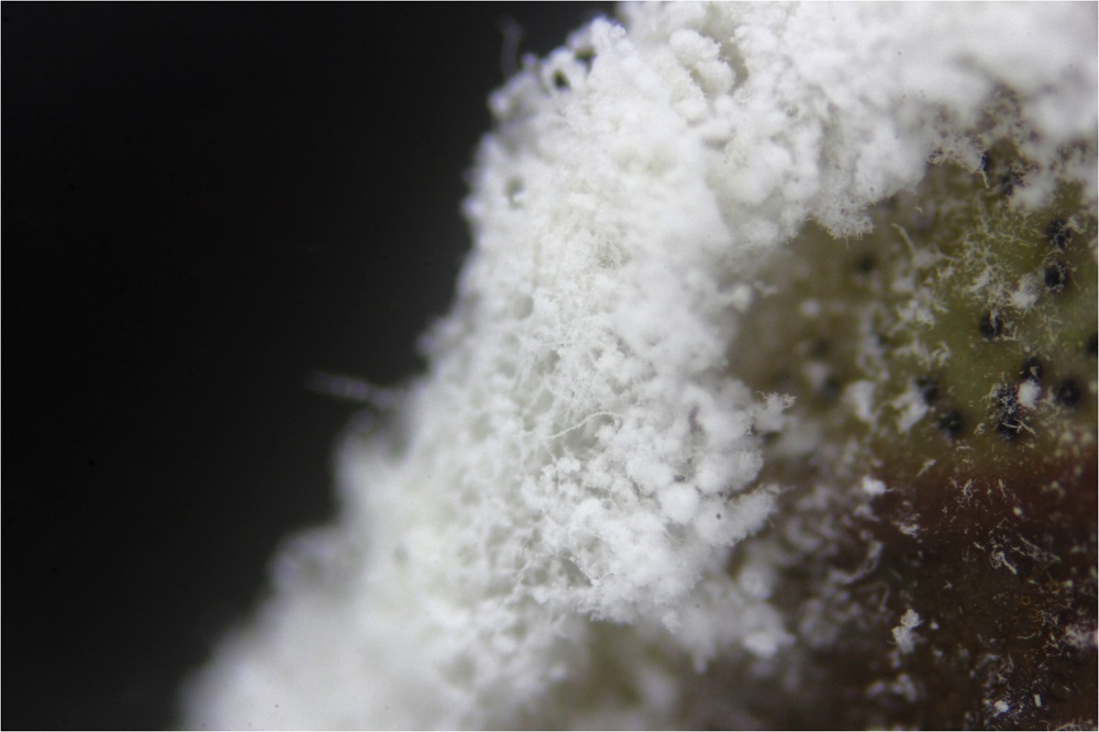 Dort fand ich zusammengequetscht eine Wanze mit einem Pilzbefall.