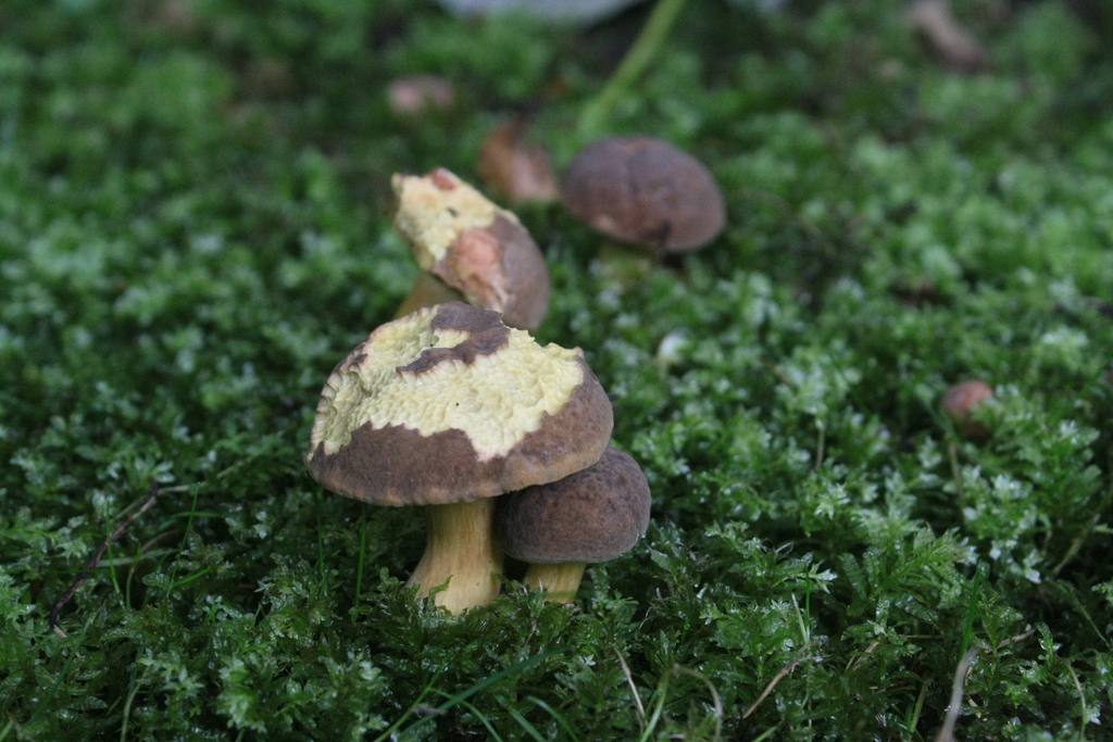 Junge Goldgelbe Lärchen-Röhrlinge, Suillus grevillei zeigten sich auch schon auf meinem Wege. Die erscheinen hier eigentlich erst später im Jahr, normalerweise.