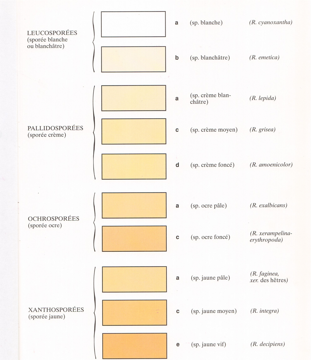 Oft wird z.B. berichtet: der Geschmack des Täublings war mild und die Sporenpulver Farbe war Ia-b;