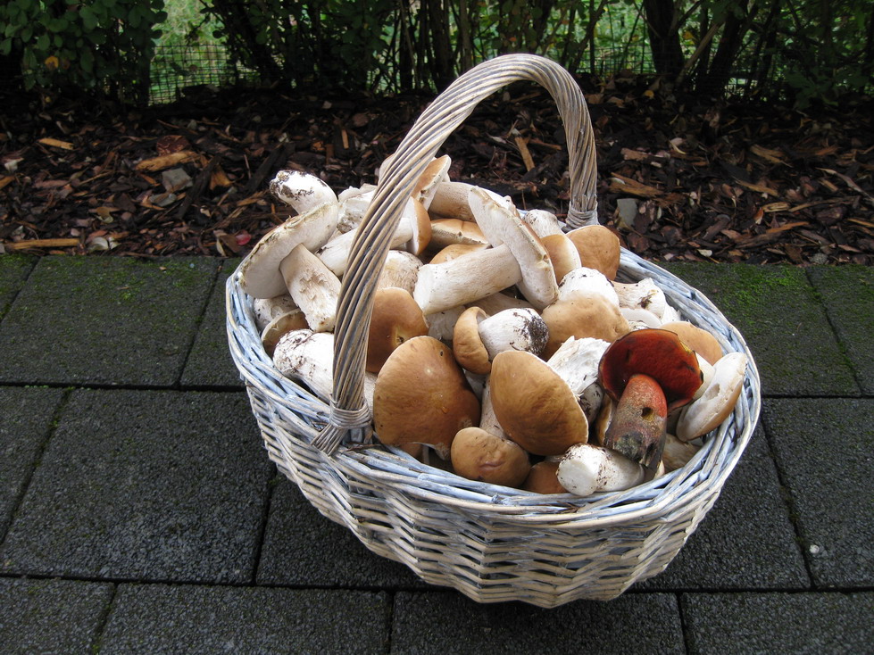 Nach dem gestrigen Regen durfte das neue Pilzkörbchen mit in den Wald.Nach 2 Stunden reichten uns die Pilze, mussten allerdings feststellen, dass an einigen Stellen bereits Großväter-Pilze standen. Also von Sonntag bis Mittwoch reichte es bei diesen besten Wetterbedingungen, um zu dieser Größe zu gelangen, dass wir sie im Wald ließen, damit sie für den Nachwuchs im nächsten Jahr sorgen können.