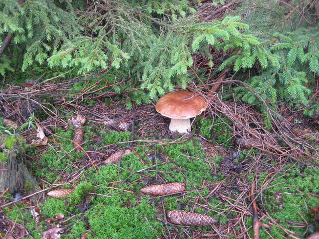 War gestern auf der Heimfahrt aus Norden einen Zwischenstop im Siegerland machen ( Bei uns im Taunus kann man es im Moment noch ziemlich vergessen ) Nach schleppenden Anfang dann doch in einem wunderbaren Fichtenwald 1 1/2 kg Steinpilze gefunden in allen Größen. Auch einige bis zur (fast) unkenntlichkeit verrottete. Zum Glück scheint es dort aber einen zweiten Schwung zu geben
