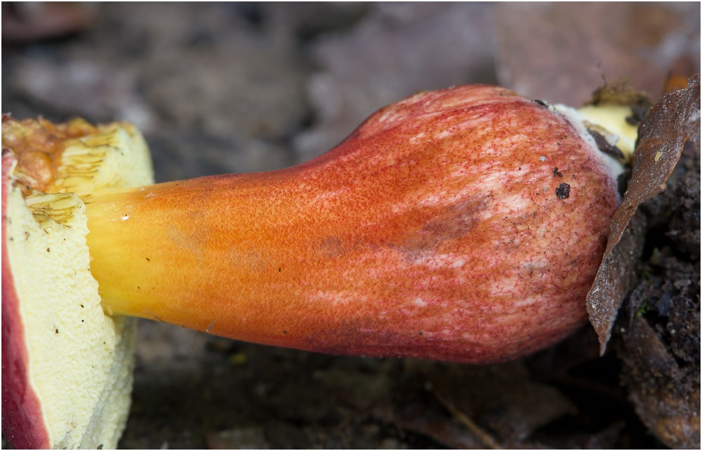 Xerocomus rubellus sollte rote Pünktchen in der Stielbasis vorzuweisen haben.