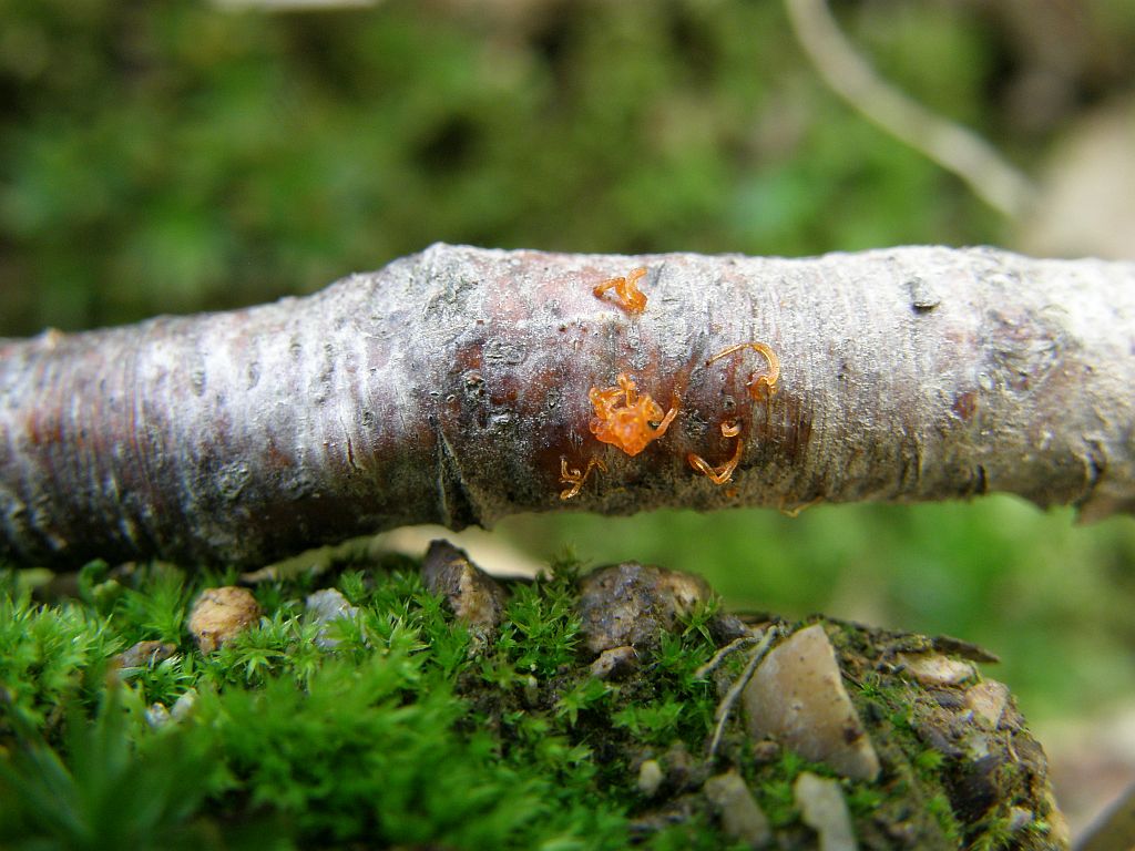 Das ganze sitzt an einem liegenden Laubholzweiglein an einer feuchten Böschung am Wegrand: