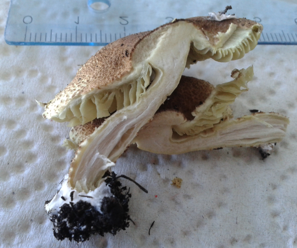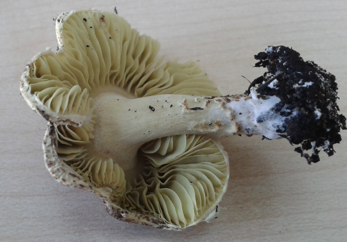 Eine interessante Geschichte, wenn man sich eingehender damit beschäftigt. Die Artauffassung ist etwas verwirrlich und es wird munter synonymisiert und durcheinander geworfen. Nach den neueren Veröffentlichungen (Ludwig, Gröger) sind elaiophylla und xanthophylla (citrophylla lassen wir jetzt mal weg, geht wahrscheilich bei xanthophylla mit rein) zwei verschiedene Arten. L. elaiophylla mit dunklerem aufgebrochenerem Hut, dem Flockengürtel am Stiel (bei xanthophylla "Velumreste" und genattert) und schmaleren Sporen. L. xanthophylla soll auch Inkrustierungen in den Huthautzellen haben, die ich nicht gesehen habe.