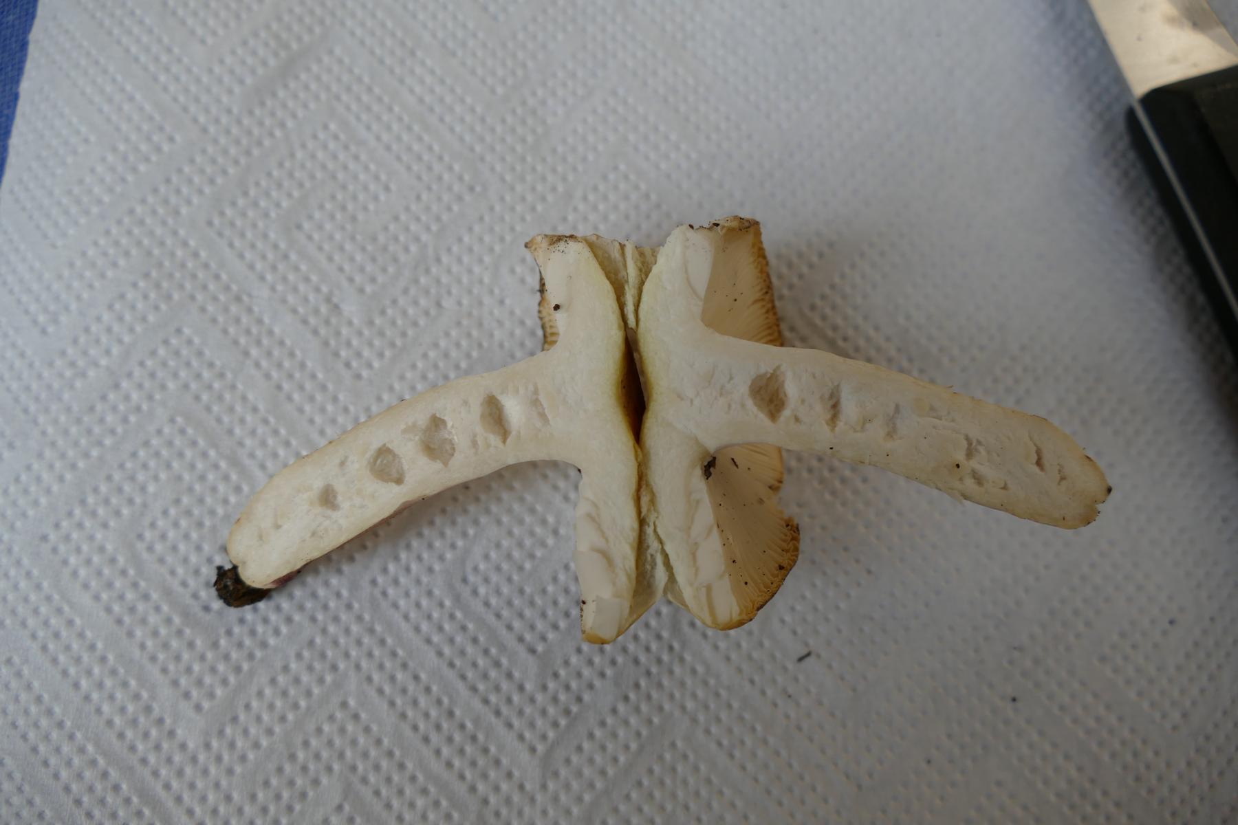 nee dann wird das schon passen. Leicht fischig passt zu R. violeiopes. Allerdings solltest du aufpassen, dass auch ein Fischgeruch im Alter mit Zersetzungsprozessen einhergehen kann; auch/erst recht bei Pilzen, bei denen ein Fischgeruch sonst nicht typisch ist.
