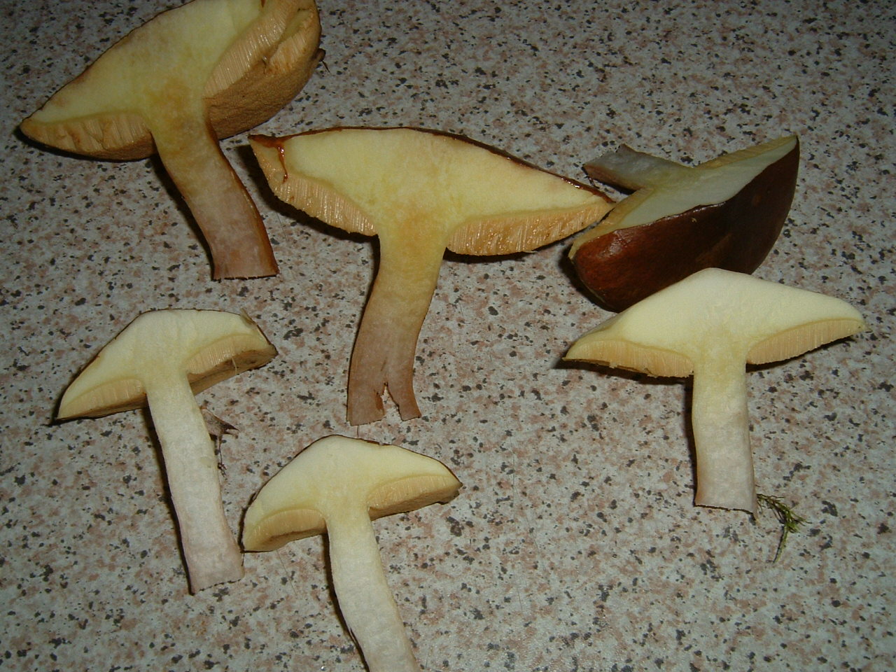 ...und die Butterpilze sind essbar? Die klebrige Haut des Pilzhutes ließ sich leicht abziehen...