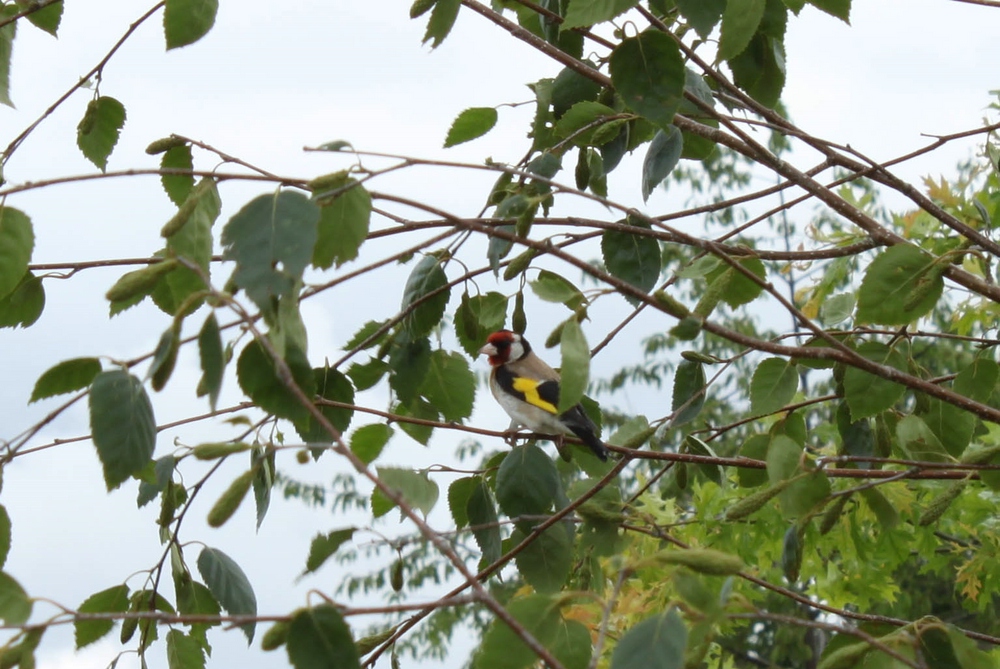 3. Und wo viele Blumen blühen, auch viele bunte Wildblumen, da fehlen auch die Vögel nicht. Dieser Stieglitz, oder Distelfink, war den Trubel sicher gewohnt und blieb lange sitzen.