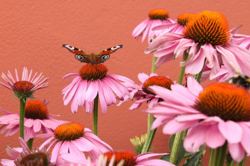 6. Und was darf ebenfalls nicht fehlen, bei so einem Überfluss an Nektar? Genau, die Schmetterlinge. Hier ein Tagpfauenauge auf Sonnenhüte, Echinacea