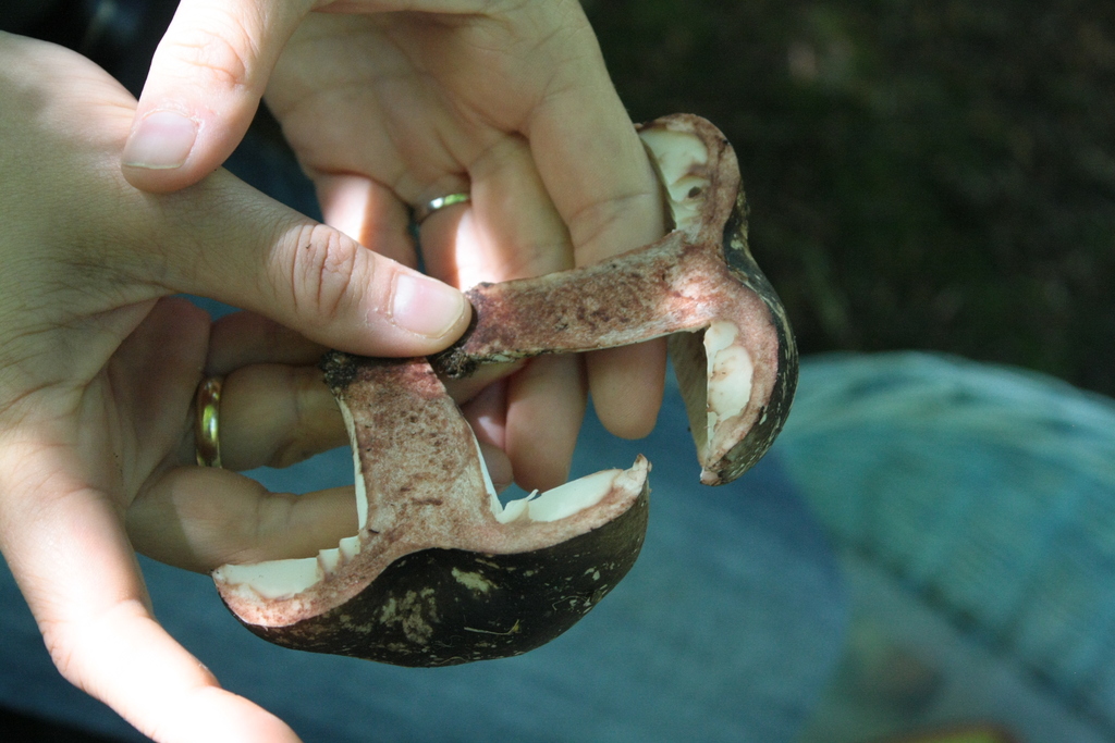 Hier die Schnittfläche eines Täublings - Dickblättriger Schwärz-Täubling, Russula nigricans