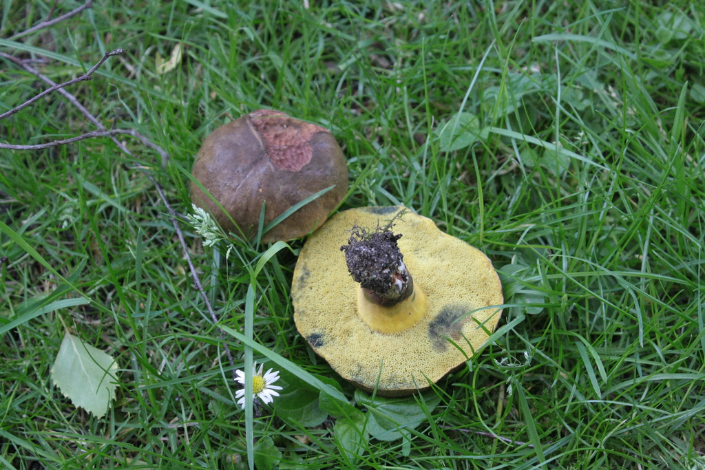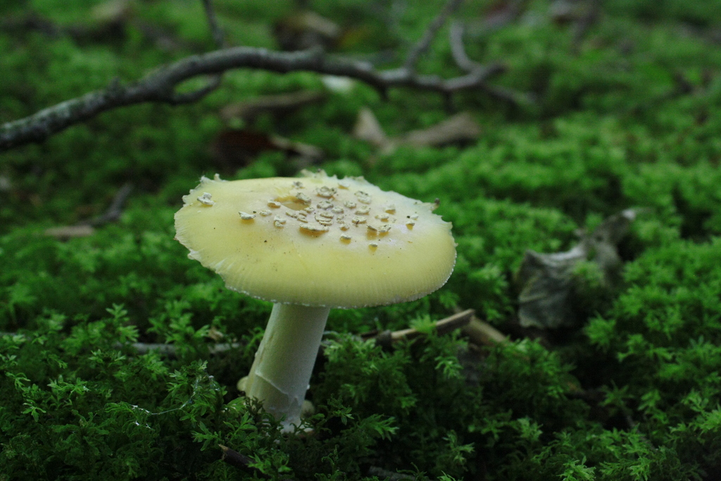Dazu Perlpilze, natürlich. Madig, natürlich auch. Und zitronengelbe Knollies. Sogar ein narzissengelber Wulstling.