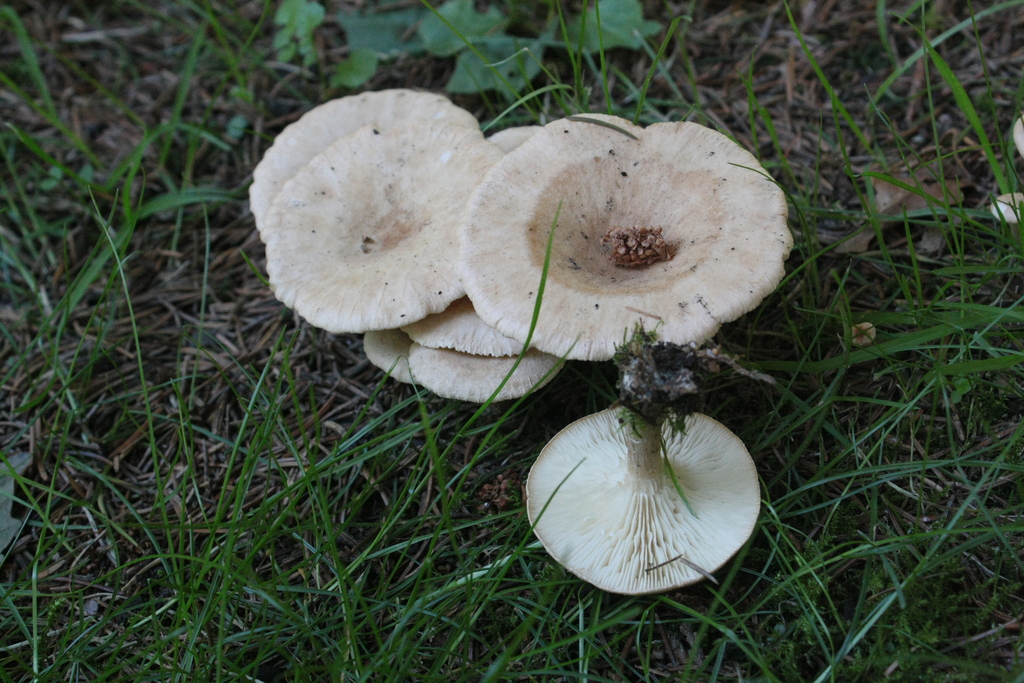 Zum Beispiel diese hübschen Braunen. Vermutlich der Wässrige Milchling, Lactarius serifluus, mit transparenter Milch.