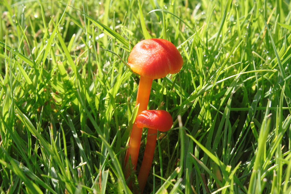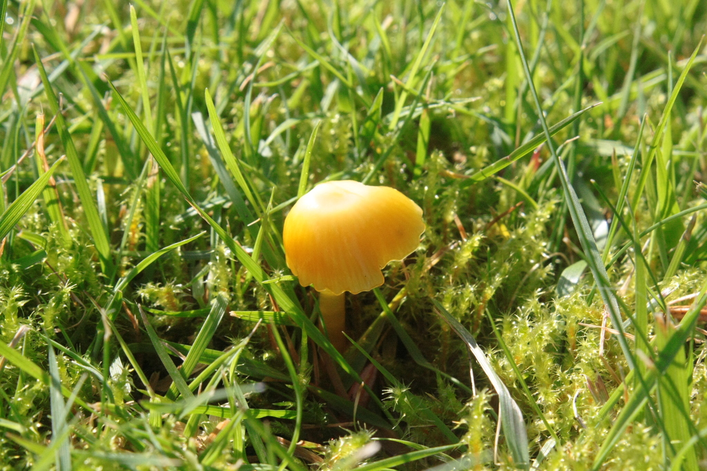 Ganz zum Schluß sogar ein paar quietschbunte Saftlinge, Hygrocybe spec.