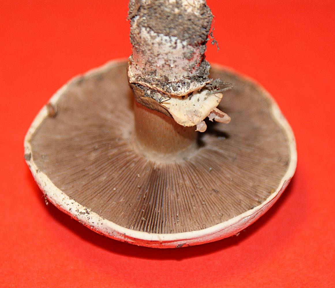 Stiel: Weiß, filzige Verdickung an der Stielbasis