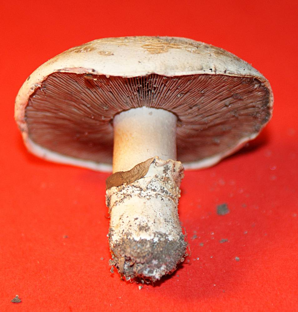 1.) Vermutung: Agaricus campestris (Wiesen-Champignon)