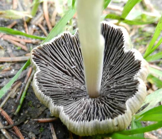 Lamellen: Weiß, gedrängt stehend, am Stiel befestigt