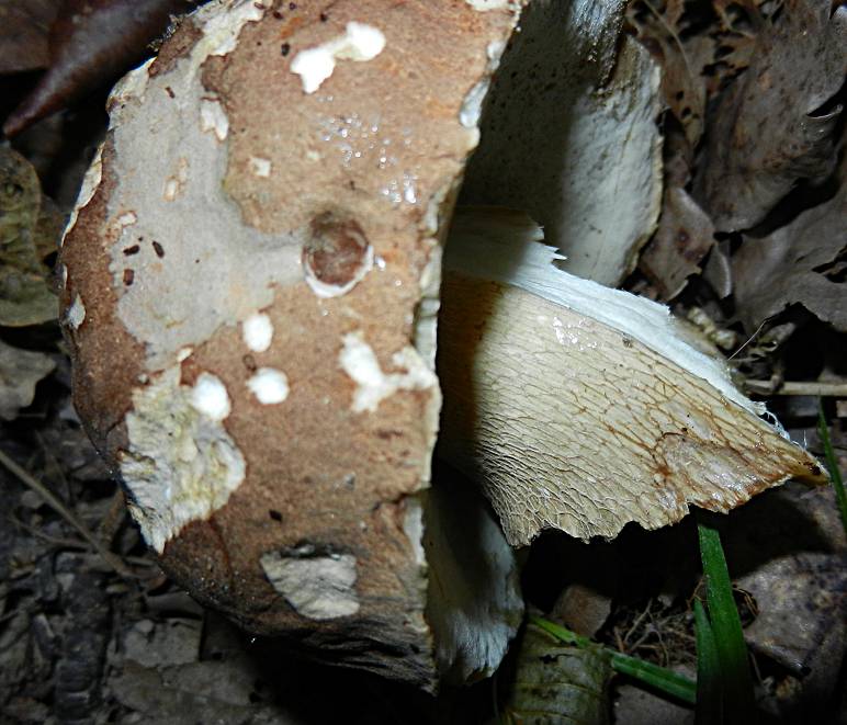 Stiel: Hellbräunlich- bis hellockerfarben, Helles Netz, an einer Stelle ist das Netz bräunlich