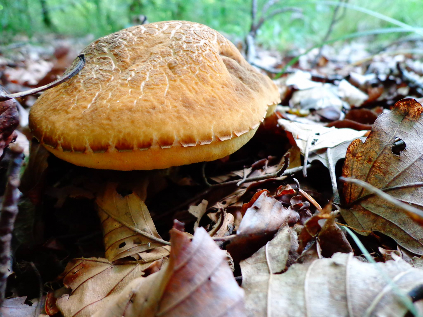 Mitten in der Sommerhitze wurde ich durch einen außergewöhnlichen Fund überrascht. Was ich zunächst für eine Rotkappe hielt, entpuppte sich bei genauerer Bestimmung als Gelbporiger Raufuß: