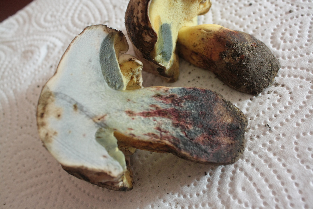 Nun ja, meine Vermutung hat sich nicht geändert. Ich denke, es wird der Wurzelnde Bitterröhrling, Boletus radicans sein. Eine Sache aber irritiert mich stark. Der rötet so kräftig im Stiel beim Schnitt.