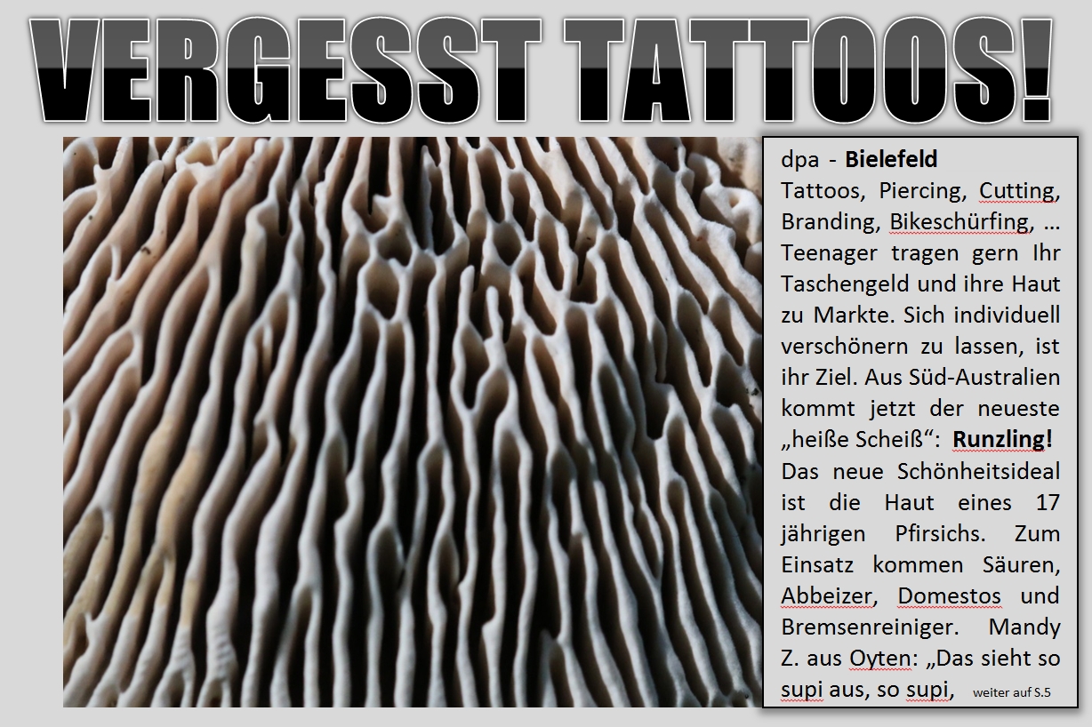 Du hast wohl gerade einen kreativen Lauf?! Augen, Mudelpützen etc... Was Du so alles als Schlagzeilen findest! -
