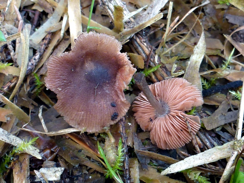 Diesen Zwerg fand ich auf einem Waldweg, randlich an einem Haufen monatealter Kettensägenspäne von einer Fichte. Ob die Späne in Zusammenhang mit dem Wachstum standen, oder lediglich als Feuchtereservoir dienten, weiß ich nicht. Die beiden Exemplare waren leicht über das Haltbarkeitsdatum hinaus.