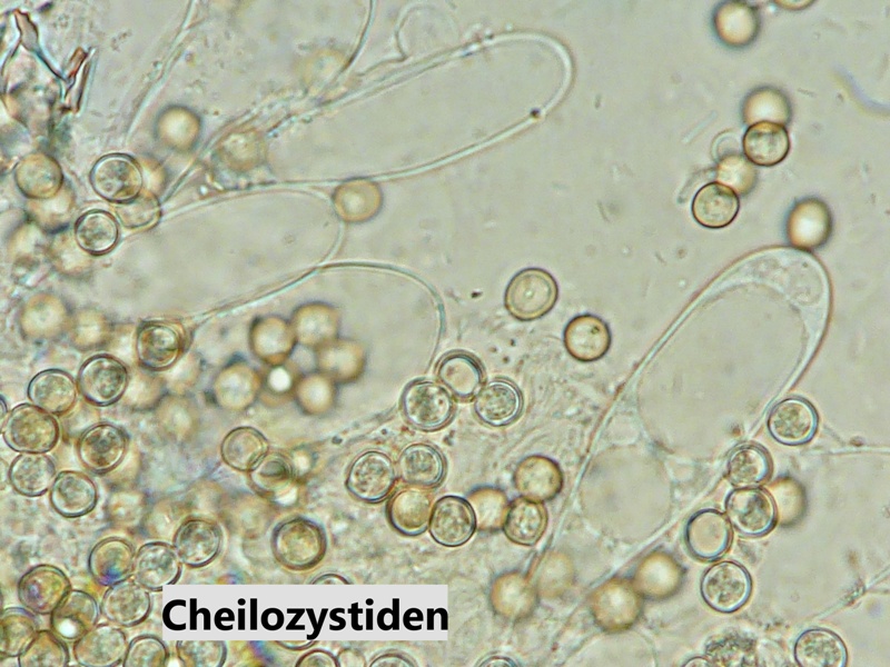 Ach, eine Frage hätte ich noch: Waren da bei den Cheilos auch welche mit Schnabel? Also so wie >hier<? Makroskopisch ist es vielleicht etwas weit hergeholt, aber kleine Sporen hat der ja auch, Huthaut sollte dann mit einigen blasigen Zellen dabei sein. Und die Stiele sind so dunkel hier, Hut ja auch, dann die Riefung...