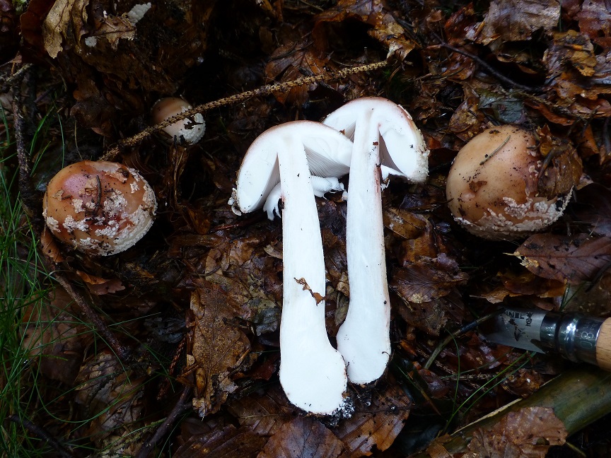 Abgesehen von den fehlenden Rötungen, stieß ich auf dieses Exemplar direkt neben den vermeintlichen Perlpilzen: