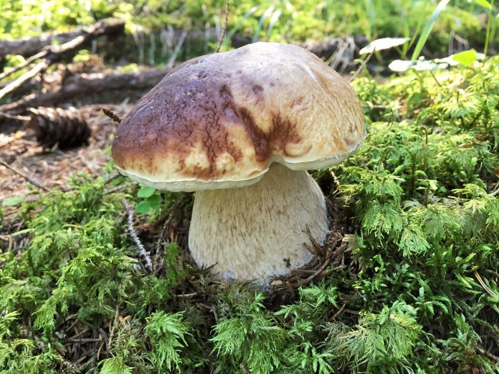 Beim Kiefernsteinpilz war ich mir insofern sicher, als er einendunklbrauen Hut gehabt hat. Stand aber mit großer Wahrscheinlichkeit nicht unter Kiefern. War ein Mischwald mit vorwiegend Fichtenbäumen.