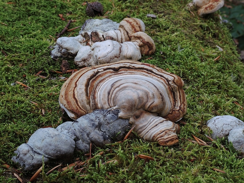 17. Platz  - Bild 5 (Craterelle) mit Rotrandiger Baumschwamm (Fomitopsis pinicola)