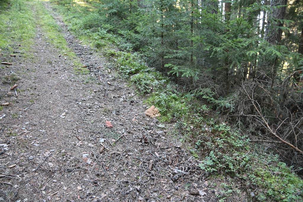 Klar bin ich heute da raufgestiefelt, so schaut der Fundort aus. Für den Saftling, das Samthäubchen, den Ohrlöffelstacheling und den Weissflockigen Kahlkopf. Ein grindiger Haufen, aber da spielt es sich ab.