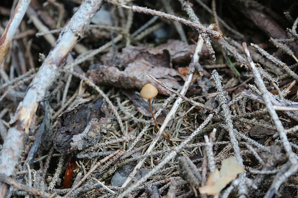Klar bin ich heute da raufgestiefelt, so schaut der Fundort aus. Für den Saftling, das Samthäubchen, den Ohrlöffelstacheling und den Weissflockigen Kahlkopf. Ein grindiger Haufen, aber da spielt es sich ab.