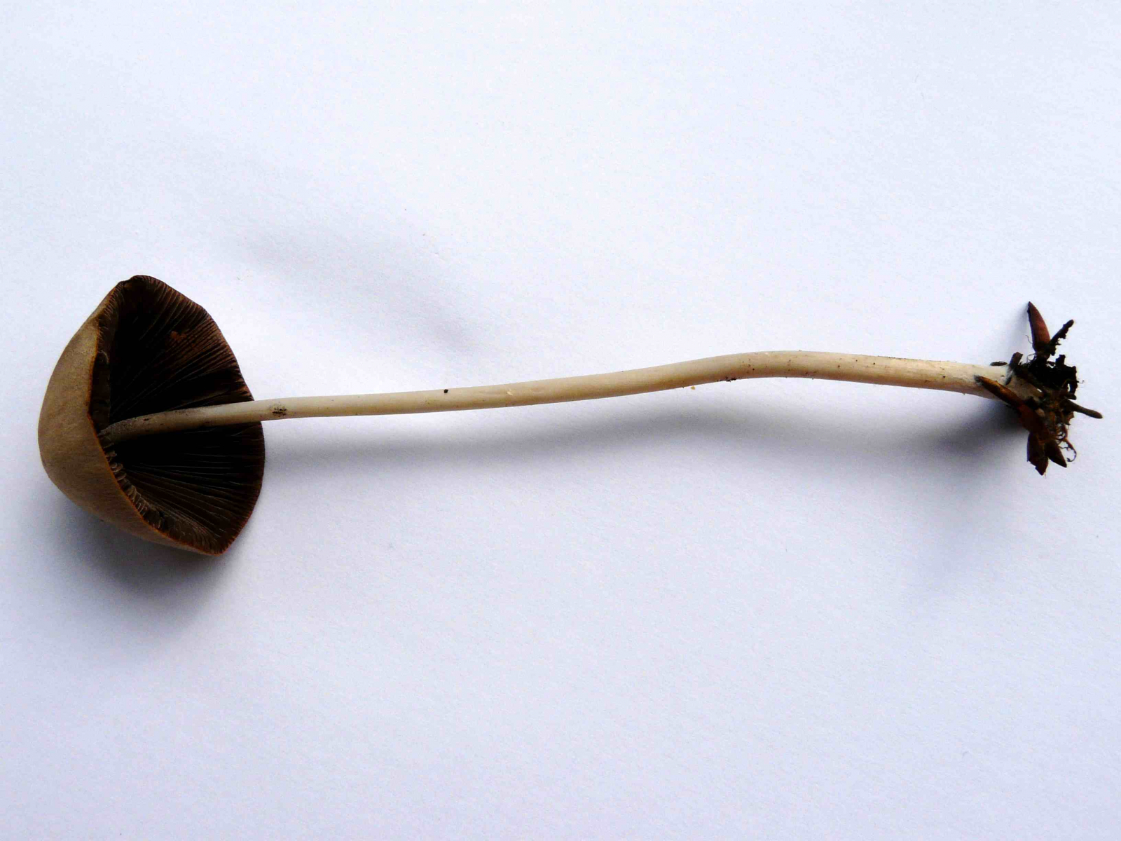 3. Wenn im Wald gewachsen, dann vermutlich Lederbrauner Faserling, Psathyrella conopilus. Wenn auf Wiese dann ein Düngerling, Panaeolus spec..