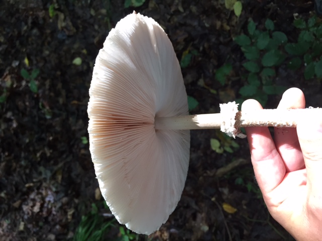 Diesen Riesenschirmling habe ich heute einige Male angetroffen, in ordentlicher Grösse, der Ring ließ sich verschieben.