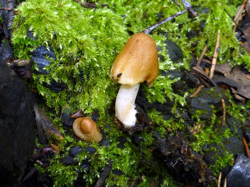 • Diese Inocybe fand ich auf einer mehrere Jahre alten Brandstelle, direkt auf der dicken Kohleschicht wachsend.