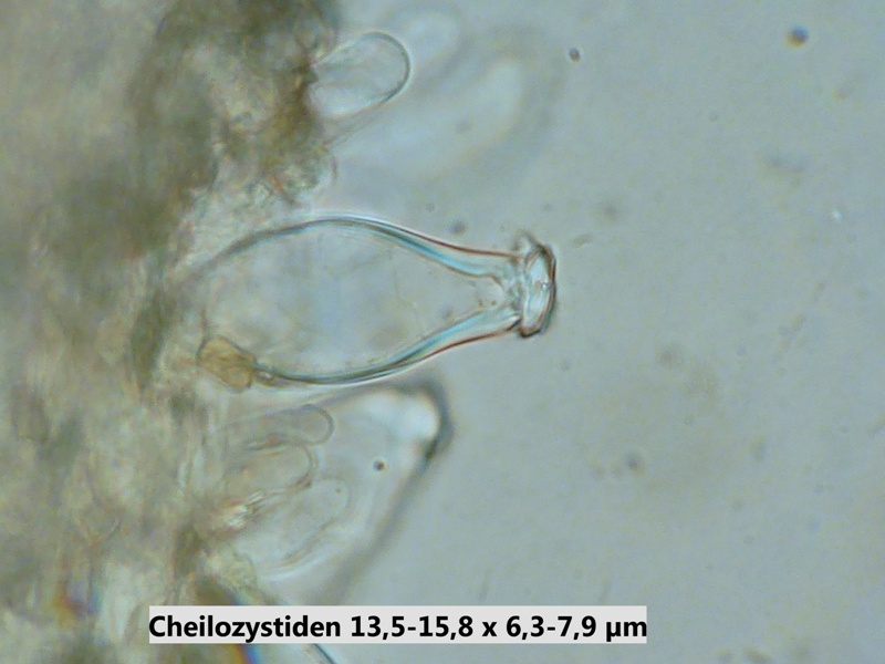 zwar habe ich I. mixtilis noch nie auf Brandstelle gefunden und auch die Sporenangaben sind zu klein, alles andere aber spricht für mixtilis, z. B. auch die Form und Wandstärke der Hymenialzystiden. Die geringe Sporengröße könnte von unreifen Frk. herrühren (die sehen auch noch sehr jung aus). Es ist halt immer das Problem: Man braucht eine größere Kollektion mit alten und jungen Frk., dann tut man sich leichter mit der Feststellung der bestimmungsrelevanten Merkmale.